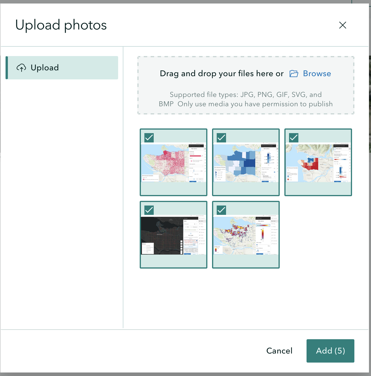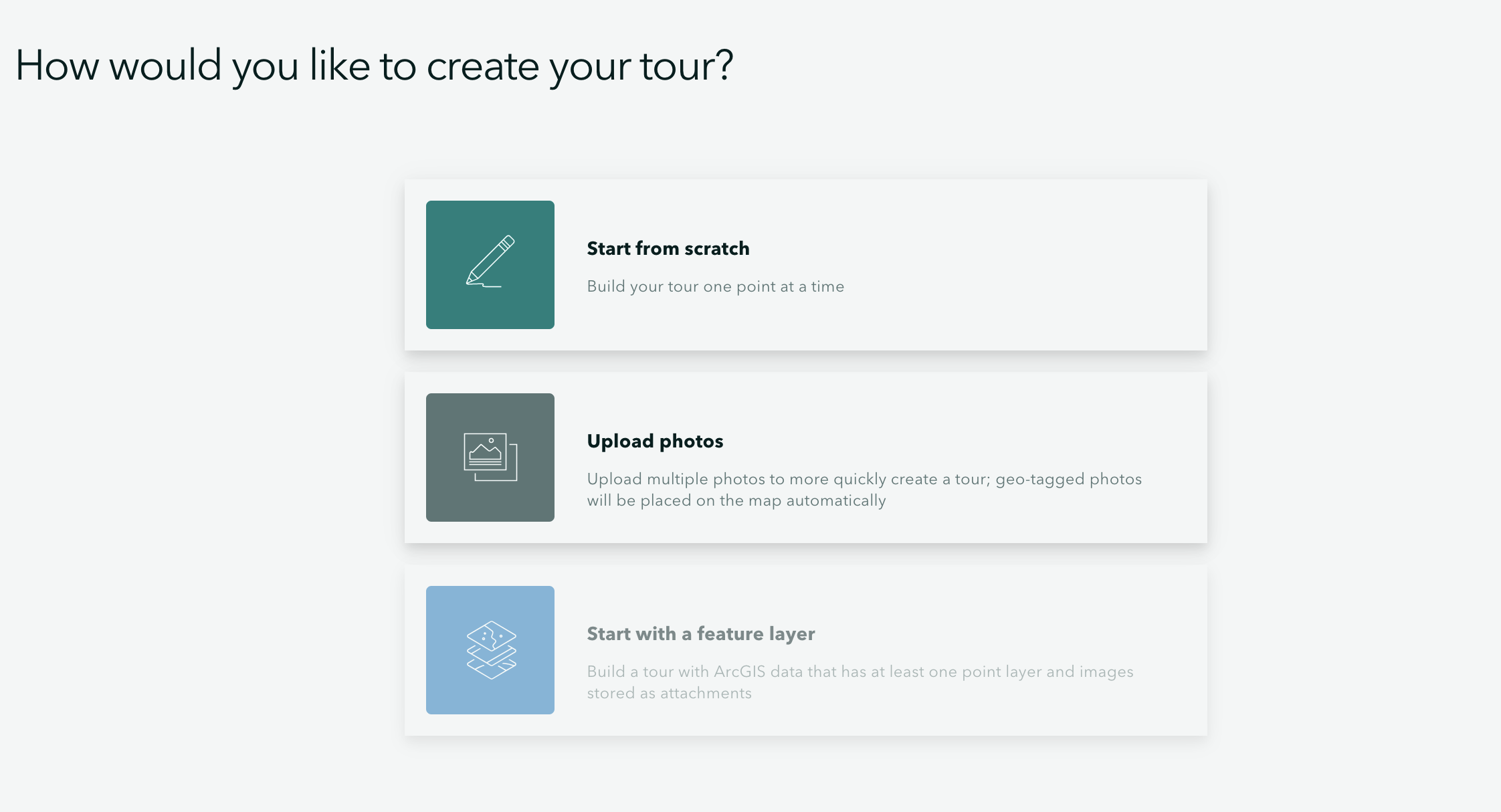 If you have a folder of images you want to use in your Map Tour, you can select Upload Photos to batch upload them. Don’t worry too much about the order, as you will be prompted to confirm your selection of images and the order they go in. Each image will populate your tour with one point.